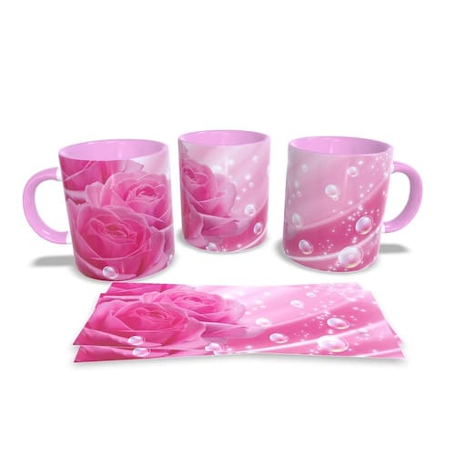 Caneca personalizada de porcelana de alto brilho, com interior e alça Rosa com linda Estampa da Coleção Flores.