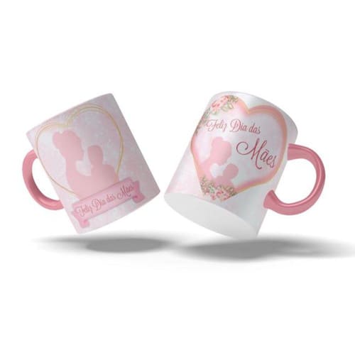 Caneca personalizada de porcelana de alto brilho, com interior e alça Rosa com linda Estampa do dia das Mães.