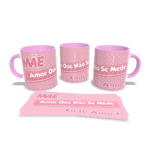 Caneca personalizada de porcelana de alto brilho, com interior e alça Rosa com linda Estampa da Coleção dia das Mães.