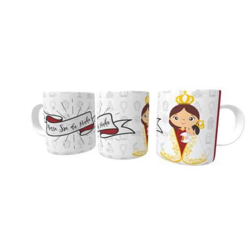 Caneca de porcelana de alto brilho, com alça e interior branca Coleção Religiões.