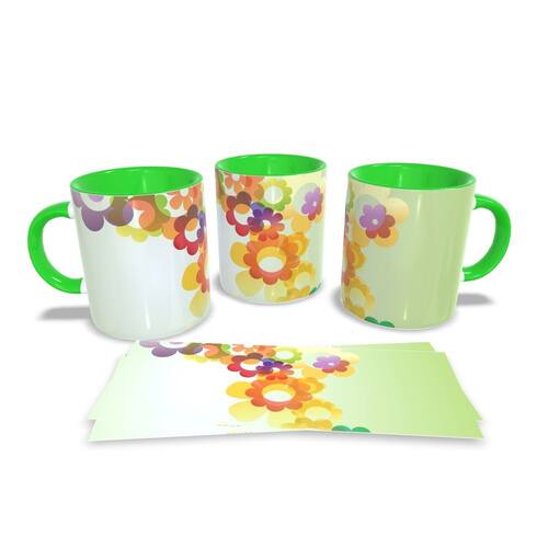Caneca personalizada de porcelana de alto brilho, com interior e alça Verde com linda Estampa da Coleção Flores.