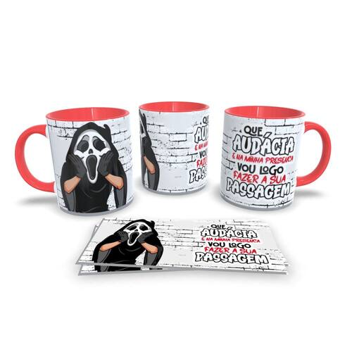 Caneca personalizada de porcelana de alto brilho, com interior e alça Vermelha com a Estampa Amostradinho.