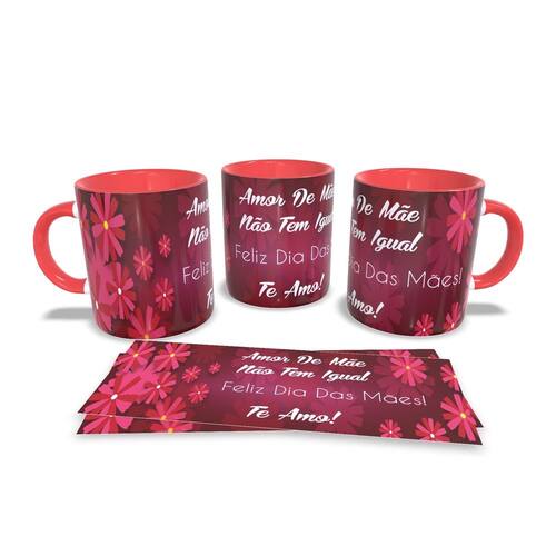 Caneca personalizada de porcelana de alto brilho, com interior e alça Vermelho com linda Estampa da Coleção dia das Mães.