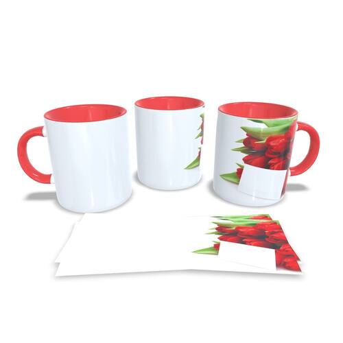 Caneca personalizada de porcelana de alto brilho, com interior e alça Vermelha com linda Estampa da Coleção Flores.