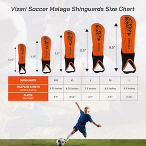 - Design criativo e durabilidade – O revestimento frontal Vizari Malaga Shin Guard protege suas canelas de chutes e é um escudo durável e de alta resistência que se encaixa automaticamente em sua perna. É um excelente protetor de treino para jogar sem hesitação ou restrição de movimento.