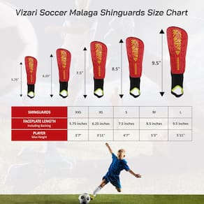 Caneleira de futebol Vizari Malaga para crianças, vermelha, tamanho pequeno