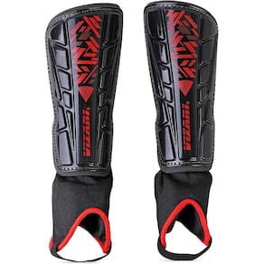 Caneleira de futebol Vizari Malaga preta/vermelha para crianças de 8 a 10 anos
