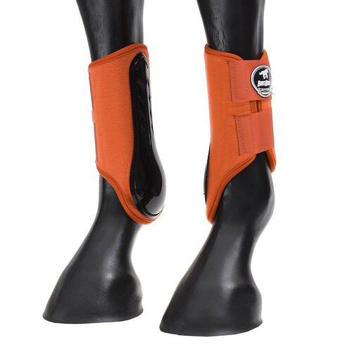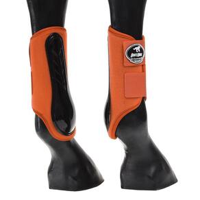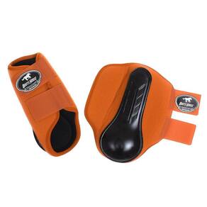 Proteção tipo caneleira para cavalo produzida em neoprene com reforço lateral em plástico reforçado, possui costuras nas bordas e 2 tira autocolantes reforçados para fechamento e regulagem permitindo ser utilizada em praticamente todos os portes de animais. Proteção indicada para as pernas dianteiras dos equinos.