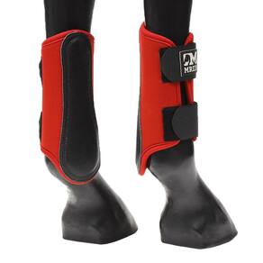 Proteção tipo caneleira para cavalo produzida em neoprene com reforço lateral em couro reforçado, possui costuras nas bordas e 2 tira autocolantes duplos reforçados para fechamento e regulagem permitindo ser utilizada em praticamente todos os portes de animais. Proteção indicada para as pernas dianteiras dos equinos.