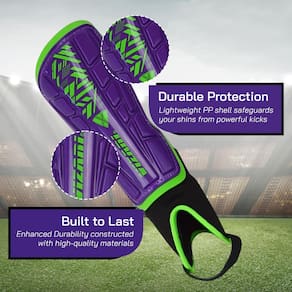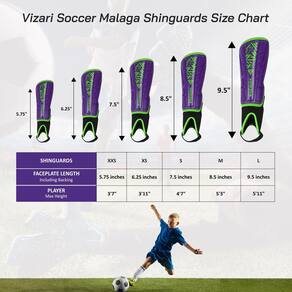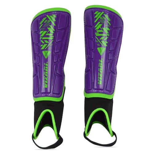 Vizari Caneleiras de futebol Málaga para crianças | Equipamento de futebol juvenil para meninos e meninas | Equipamento de proteção de futebol | Alças ajustáveis (roxo/verde, 2GG)