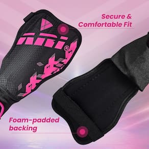 Caneleiras de futebol juvenil Vizari Napoli para meninos e meninas — rosa/prata, médias | Caneleiras de futebol de design elegante com material flexível texturizado de PP exclusivo para maior conforto e proteção