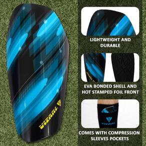 Caneleira de futebol deslizante Vizari Salinas com manga de compressão para crianças e adultos | Caneleiras leves bicolores resistentes ao desgaste | Caneleiras de futebol juvenil sem bolso