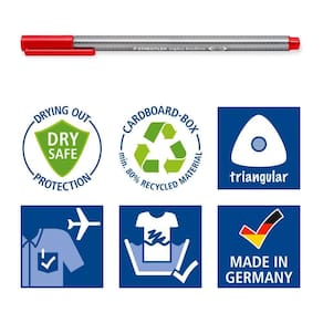 Caneta 24 Cores Triplus Fineliner Design Journey Staedtler Características: - Kit com 24 cores - Ponta superfina de metal - Formato ergonômico para escrita fácil e confortável - DRY SAFE: pode ser deixado sem tampar por dias, sem secar, exceto por Cores neon - Tinta à base de água Lavável na maioria dos têxteis - Corpo em PP garante longa vida útil -Traço de aprox. 0.3 mm As cores podem mudar de acordo com a saturação da tela, Imagens meramente ilustrativas Garantia: Indeterminado Marca do produto: Staedtler País de origem do produto: Alemanha Inmetro: 002599/2020