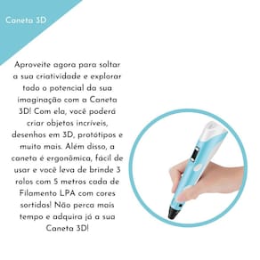A caneta tem um bico de 0.7mm e usa o filamento de 1,75mm. Velocidade de saída de filamento ajustável Grande durabilidade Design ergonômico Fácil troca de filamento Painel LED de temperatura com luz auxiliar que mostra quando a caneta está pronta para o uso.