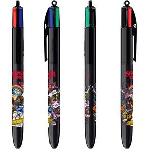 Descrição do produto : A Caneta BIC 4 Cores e um icone de mercado! Nesse modelo classico que conta com tintas classicas, com apenas um clique no botao, voce seleciona a cor que deseja. Cada Caneta ainda possui corpo decorado com tematicas de Stranger Things, dando um ar enigmatico e cheio de personalidade para essa caneta tao iconica da BIC. As Canetas contam com ponta media de 1.0mm com largura da linha de 0.32mm. Alem disso, nao travam durante o uso! Conjunto de Canetas com 12 Unidades. :
