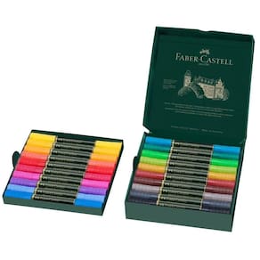 Um marcador de aquarela de artista é a definição moderna de pintura em aquarela: um instrumento de desenho de alta qualidade que suporta tanto esboços espontâneos quanto pinturas artísticas em aquarela. A tinta à base de água está sempre pronta para uso e também pode ser completamente lavada com água. A versatilidade deste marcador é especialmente convincente em viagens. Aqueles que gostam de guardar impressões enquanto estão em movimento ficarão encantados em poder recorrer a esta caneta.