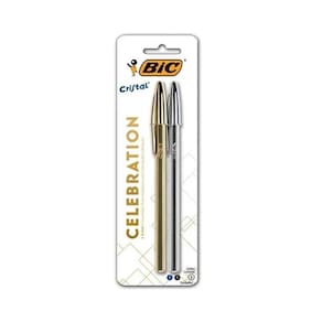 Caneta Bic Celebration Blister C/2 Unidades Caneta Bic Celebration Blister C/2 Unidades Caneta Bbic Celebration, ideal para ocasiões especiais, assinatura de livro de visitas, contratos, também Fica linda na sua mesa de trabalho ou no seu material escolar, perfeita para aquele detalhe especial Especificações Canetas com corpo plástico e cor metalizada A caneta de cor DOURADA tem a tinta na COR AZUL A caneta de cor PRATA tem a tinta na COR PRETA Canetas esferográficas com ponta média de 1.0mm Usa o mesmo refil de tinta da caneta normal bic de ponta média 1.0mm Se acabar a tinta você pode trocar o refil Embalagem Caneta Bic Celebration Blister C/2 Unidades 12 Meses Marca: Não Informado