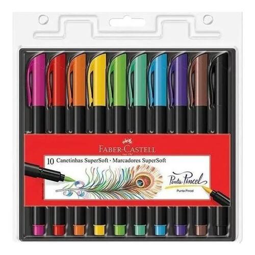 Caneta Brush Pen Faber Castell 10 Cores Vibrantes - Pincel M