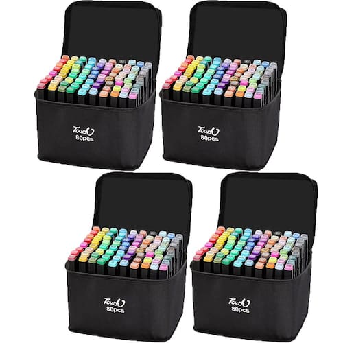 As canetas são de ponta dupla, duas pontas padrão, grossa e fina. Os marcadores são a base de álcool e não contém cheiro, ideal para crianças.