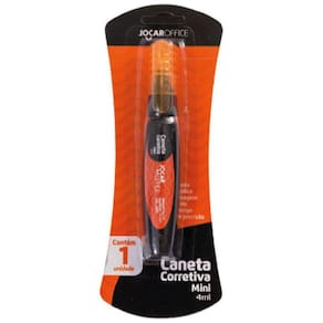 Caneta Corretiva Mini 4ml Jocar Office: - Ideal para corrigir erros causados por tinta de caneta esferográfica; - Também pode ser Utilizado para correção em textos impressos e fotocópias; - Ponta metálica; - Corrige com precisão; - Prática e de fácil manuseio; - Secagem rápida. ESPECIFICAÇÕES Marca: Leonora Cor: Branco Volume: 4ml Marca: Não Informado Ean: 7897256296416