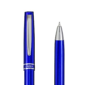 Descrição: azul com detalhes cromados tem sua escrita com conforto e maciez. Mecanismo torção e com carga esferograficas crown padrão parker. Características cor: azul detalhes: cromados