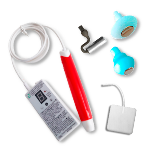 Descrição: A Caneta de Eletroestimulação Pró-Fono é um dispositivo portátil para a aplicação de estímulos elétricos de baixa frequência (5 a 90Hz) em regiões do corpo. sendo utilizada em terapias na área da Saúde como recurso de Eletroterapia, mais especificamente na Estimulação Elétrica Transcutânea (TENS – Transcutaneous Electrical Nerve Stimulation), com finalidade de atuar no metabolismo neuromuscular, alcançando efeitos de analgesia e de relaxamento musculares. Funciona com uma pilha AAA de 1,2 a 1,5V. Caneta de Eletroestimulação Pró-Fono (Caneta de Eletroestimulação com as três Ponteiras de Eletroestimulação, Eletrodo Dispersivo e Cabo de Conexão do Gabinete Plástico ao Eletrodo Dispersivo).