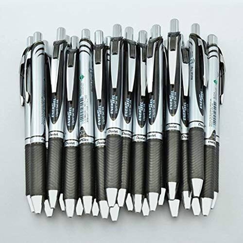 Não se esqueça de remover a pequena conta de plástico macio na ponta antes de escrever. Lote a granel de 15 canetas do popular Pentel EnerGel RTX. Ponta de metal .7mm (não o ponto de agulha estilo EnerGel), tinta preta. Canos prateados com pegas pretas sem látex.