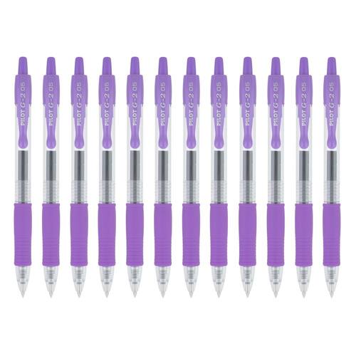 Pilot Canetas de gel retráteis G2, ponta extrafina, tinta roxa, 0,5 mm, pacote com 12 (31107)