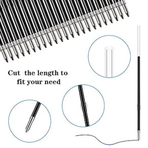 Informações básicas: Nome: recargas de caneta de tinta Tamanho: 10,7 cm/4,2 polegadas Material: plástico, cor da tinta: preta Embalagem: 100 x Recargas de caneta esferográfica Características: 1. Secagem rápida, fácil de usar, sem derramar ou desbotar. Ponta de 2,0,7 mm para uma escrita suave e uma experiência de escrita estável. 3. Leve e fácil de manusear. 4. É adequada para escritório, empresa, escola e família. 5. Caneta esferográfica refis Uma pí com boa textura pode ser compartilhada com colegas de classe ou colegas. Comprimento adequado: cada refil de caneta tem cerca de 10,7 cm/4,2 polegadas de comprimento, você pode cortar seu comprimento para combinar com várias canetas, não apenas adequado para canetas retráteis. Dicas: Remova a tampa esférica da ponta da caneta antes de escrever.