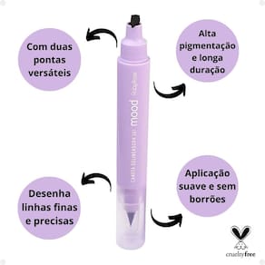 Caneta Delineadora 2x1, ideal para um delineado perfeito. Com duas pontas versáteis, você pode desenhar linhas finas e precisas ou traços ousados e marcantes. Sua fórmula de alta pigmentação e longa duração mantém o look intacto. A aplicação é suave e sem borrões, oferecendo controle total e fácil manuseio. Não testado em animais.