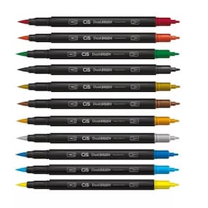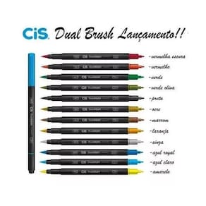 Estojo de canetas Brush Pen Cis Dual com 12 Cores e ponta pincel indicada para artistas plásticos, gráficos, arquitetos, desenhistas, designers e ilustradores. Ideal para amantes de lettering