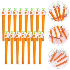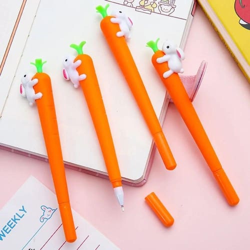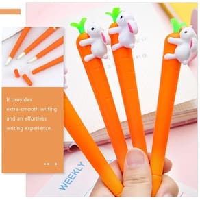 - Material de Alta Qualidade: Corpo em Resina Termoplástica. - Ponta de: 0,5mm - Tamanho da caneta: 15 cm - Tipo de tinta da caneta de Gel: Gel-Ink - Design Criativo: Cenoura - Corpo Emborrachado Textura Macia