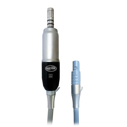 Caneta elétrica intra com cabo e conector tipo medsnap pra utilização em motores de implante da marca Dentscler. Encaixe somente para motores da Dentscler A Irrigação deste equipamento pode ser feita internamente ou externamente. Sai configurado de fabrica como irrigação interna, mas utilizando uma mangueira espaguete podese utilizar externa