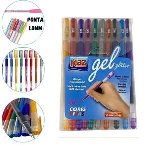 Caneta Esfereográfica 1.0 Gel Glitter 10 Cores Kz98121