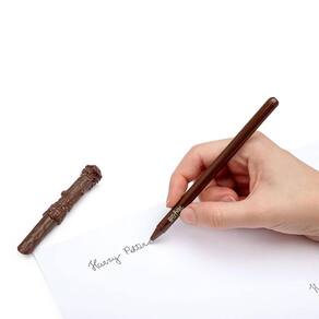 Mais estilo para escrever feitiços e desenhar magias. Assim é a Caneta Esferográfica Ponta 1.0 Formato Varinha Harry Potter. Com o corpo em formato de varinha e com a tampa estilizada, esta caneta esferográfica é divertida na hora de realizar uma prova, fazer o trabalho do escritório, assinar um documento ou mesmo desenhar, pois ela é puro encanto!