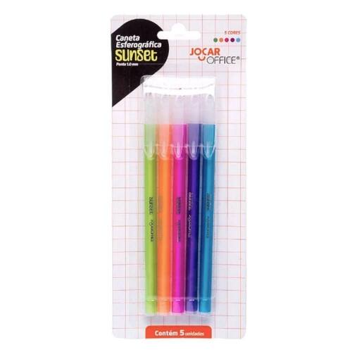 Minimalista no design, atraente no visual e muito prática no uso, assim pode ser descrita a caneta esferográfica sunset jocar office. Impactante visualmente, ela tem seu corpo colorido e despojado. Já quando está na mão, oferece suavidade, sendo divertida para escrever, desenhar, tracejar ou mesmo rabiscar. Possui ponta de 1.0 mm de diâmetro, variedade de cores na tinta, tampa com clip para prender em cadernos e agendas, design moderno que alegra as tarefas no estudo ou no escritório e formato redondo que proporciona conforto na pegada. Atenção: imagem meramente ilustrativa. Pode ocorrer mudanças no tom da cor para o produto real ou mudanças na embalagem sem aviso prévio por parte do fornecedor/fabricante. Marca: Não Informado Ean: 7897256229520