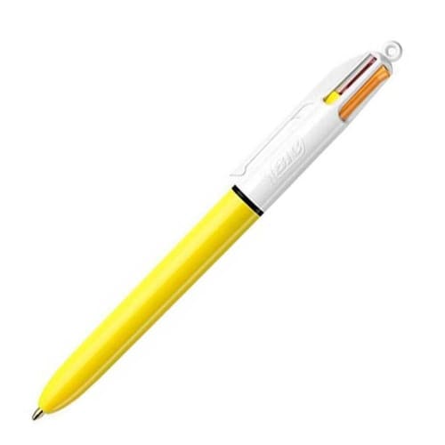 A praticidade de 4 cores em um só clic essa versão da linha 4 cores possuem corpo amarelo e ponta fina de 0.8 mm para maior precisão nos traços. Oferecendo qualidade e eficiência, não trava durante o uso e escreve de 2 a 3 km. Com a linha de materiais da bic você garante toda a qualidade necessária para realizar suas tarefas diárias e trabalhos impecáveis. Com qualidade bic reconhecida, a caneta oferece cores clássicas como azul, preto, vermelho e verde. Escolha a sua preferida e divirta-se escolha a cor que quiser. A caneta bic 4 cores é um ícone de mercado com uma escrita colorida nesse modelo de escrita fina, com apenas um clique no botão, você seleciona a cor que deseja. Características técnicas. Conta com ponta fina de 0.8mm com largura da linha de 0.32mm. Além disso, não trava durante o uso cores diversas. Com qualidade bic reconhecida, a caneta oferece cores clássicas azul, verde, roxo e rosa. Escolha a sua preferida e divirta-se atenção: imagem meramente ilustrativa. Pode ocorrer mudanças no tom da cor para o produto real ou mudanças na embalagem sem aviso prévio por parte do fornecedor/fabricante. - atenção não recomendável para crianças menores de 3 três anos por conter parte s pequena s que pode m ser engolida s ou aspirada s e ponta s aguda s funcional is .