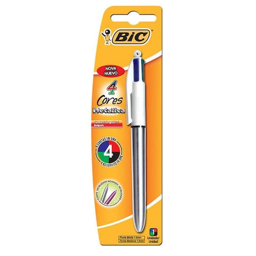 Caneta esferográfica 4 Cores Metálica Prata - Bic