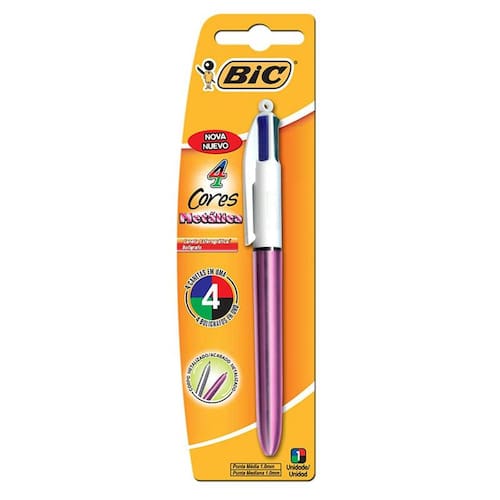 Caneta esferográfica 4 Cores Metálica Rosa - Bic