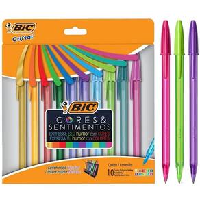 Caneta Esferográfica ponta média 1.2mm 10 cores vivas para uma escrita colorida e vibrante Tampa ventilada Tampa e corpo acompanham a cor da tinta Qualidade BIC Cor: 10 cores