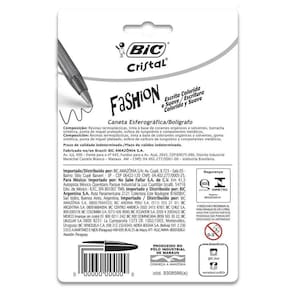 Caneta Esferográfica Bic Fashion Cristal Colorida 10 Cores Caneta Esferográfica Bic Fashion Cristal Colorida 10 Cores A caneta BIC Cristal Fashion tem ponta média e escrita grossa, proporcionando suavidade e deslizamento super fácil Possui tampa ventilada para garantir a segurança do produtoExistem cores brilhantes para escolherCom a linha de materiais BIC, você pode garantir todas as qualidades necessárias para realizar as tarefas diárias e um trabalho perfeitoA série BIC possui diversos modelos e funções, perfeitos para decorar sua mesa, material escolar ou escritório, ajudando você a ter sempre à mão tudo o que precisaA caneta BIC Cristal Fashion é perfeita para quem quer se livrar da rotina DiferenciaisDurávelMaterial resistenteFácil de utilizarEscrita colorida e suave AplicaçãoEscolasEscritóriosContabilidadesEmpresas em geral EspecificaçõesPonta 1,2 mm para uma escrita mais macia e cores vibrantesTampa e corpo acompanham a cor da tintaEmbalagem com 10 canetas EmbalagemCaneta Esferográfica Bic Fashion Cristal Colorida 10 Cores Garantia12 Meses