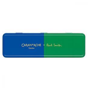A icônica caneta esferográfica 849, companheira diária de Paul Smith, foi transformada em um objeto ultramoderno e a assinatura do designer cobre sua forma hexagonal. Tão confortável como sempre para segurar, exibe elegância e estilo incomparáveis. Esta coleção, incorporando toda a expertise da Caran d'Ache, apresenta 12 cores em suas canetas icônicas, e também em suas caixas de metal nômades e reutilizáveis.Fabricado na Suíça, a Caneta Esferográfica com corpo hexagonal em alumínio leve e resistente, decorado com as listras emblemáticas e assinatura dourada do famoso designer.Com botão e clipe de metal. Acompanha um cartucho de tinta azul Caran d'Ache Goliath.
