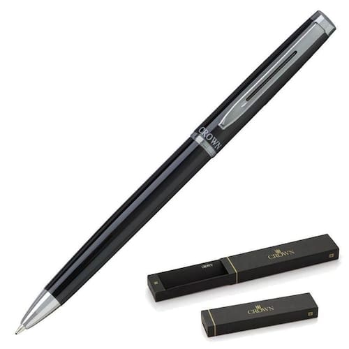 Caneta Esferográfica Crown Ref: Di10079p Libra Chrome Preta Caneta Esferográfica Comprimento: 13,5 cm Diâmetro: 0,7 cm Peso Aproximado: 20g Ponta Média Acompanha uma Carga Acoplada na Caneta de 1 Ano Marca: Não Informado