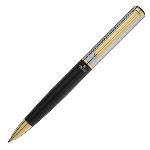 A Caneta Esferográfica Crown Regent é um best-seller da marca, que há décadas encanta os consumidores por todo Brasil. Confeccionado inteiramente em metal, este instrumento de escrita combina a classe do laqueado negro com a sofisticação do cromado e do dourado. Uma fusão interessante de propostas que resulta em um dos mais icônicos modelos da Crown.