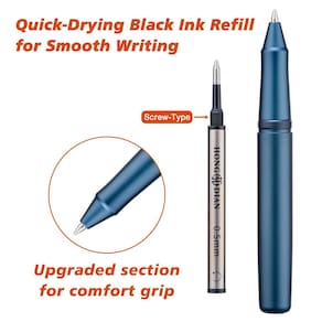Especificações: - Modelo: Hongdian M2 - Tampa da caneta: Tipo de parafuso - Material: Alumínio - Tamanho da linha: ponta fina (cerca de 0,5 mm) - Refil de tinta: refil de tinta preta Hongdian Rollerball (tipo parafuso, 75 mm) - Comprimento: 105 mm - Comprimento do pino: 5,20 polegadas / 132 mm - Diâmetro: 13 mm - Peso da caneta: 23,5 g - Peso sem tampa: 12 g Embalagem: - 1 caneta esferográfica - 1 refil de tinta preta Hongdian (pré-instalado no barril da caneta). - 1 capa de metal. Aviso: - Cada caneta é verificada à mão e escrita por um artesão. - Você pode comprar mais refis de tinta para esta caneta esferográfica Hongdian M2 visitando nossa loja ou pesquisando "Hongdian M2 Refill" na Amazon. - Escritor sólido e durável – Projetado como uma mini caneta com comprimento de 10,5 cm / 4,13 polegadas, estrutura de metal de alumínio, seção de aderência confortável e apenas 12 g de peso para sua escrita consistente. Também adota um processo de anodização para colorir para uso a longo prazo e para evitar descascar a tinta. - Design exclusivo – o design clássico simplificado e elegante com cor azul meia-noite adiciona um sentido elegante à sua rotina diária. O clipe mecânico resistente com mola ajuda você a fixar a caneta a um notebook, bolso uniforme ou em qualquer lugar. - Tinta preta de secagem rápida – Especialmente formulada para secar instantaneamente após a escrita, evitando manchas e mantendo suas mãos e papel limpos, ideal para anotações rápidas, diário e transporte diário. - Ponta fina de precisão de 0,5 mm – oferece escrita suave e sem pular com uma ponta fina de bala, perfeita para anotações rápidas. Seu design compacto a torna a caneta EDC ideal, cabe facilmente no seu bolso ou bolsa para conveniência em movimento. - Artesanato requintado – cada caneta foi montada manualmente e testada individualmente por um artesão hongdiano para uma qualidade impecável antes de enviá-la. Você também pode comprar mais refis de tinta visitando nossa loja ou pesquisando "Hongdian M2 Refill" na Amazon.