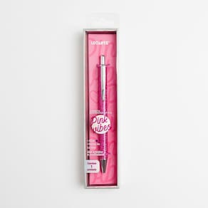 O rosa está em alta nesta temporada. E se for rosa com glitter, já tem nosso coração na certa E a Caneta Premium Pink Vibes Leoarte já está escrevendo todas as tendências. Ela vem em um estojo com uma unidade, de tinta azul e ponta de 1.0mm. Possui um design moderno, com haste e corpo em aço inoxidável, ponta e tampa em cobre e clipe em ferro.