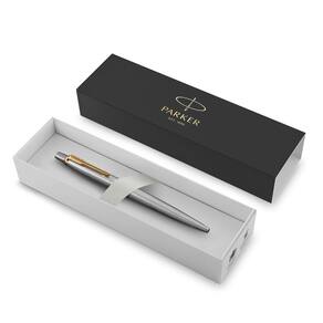 Parker Caneta esferográfica Jotter, aço inoxidável com acabamento dourado, tinta azul de ponta média, design exclusivo de abertura por clique, vem em uma elegante caixa de presente - Estética elegante: possui um barril de aço inoxidável com acabamentos dourados - Design icônico: apresenta linhas simples para uma nova abordagem ao design clássico Parker Jotter - Escrita suave: equipada com um refil de esferográfica Quinkflow para um fluxo de tinta ideal - Recarga universal: também aceita refis de gel PARKER para uso versátil - Característica exclusiva: o design retrátil abre e fecha com um clique tátil - Embalagem diferenciada: vem em uma elegante caixa de presente Parker - Presente perfeito: um presente refinado para graduados, candidatos a emprego pela primeira vez ou entusiastas de boa escrita
