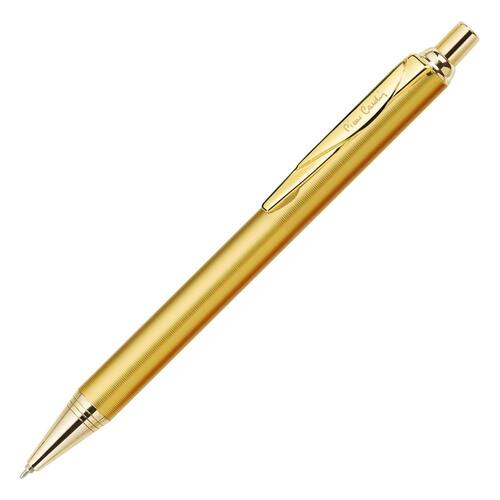 A Caneta Esferográfica Pierre Cardin Daytona exala robustez e elegância. Com um corpo dourado fosco, ela chama atenção pelo seu design sofisticado. Os detalhes folheados a ouro adicionam um toque de luxo e o sistema de clique garante praticidade e agilidade no uso diário. Esta caneta é uma escolha perfeita tanto para uso pessoal quanto como um presente de alto nível, refletindo prestígio e bom gosto.