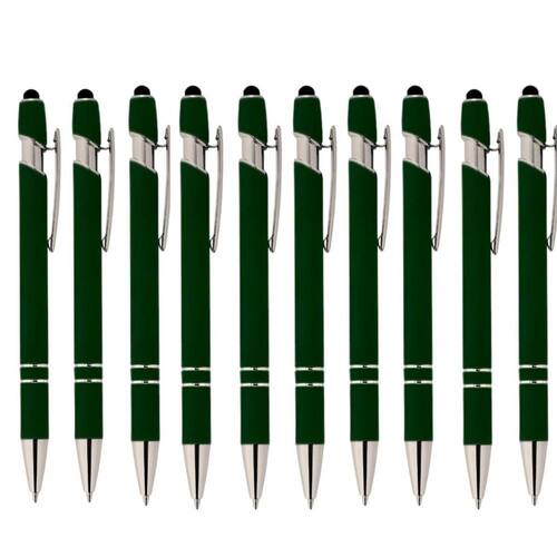 Caneta esferográfica touch kit com 10 unidades 5 cores-luxo Cor: verde Bem vindo a nossa loja A lualki store tem os melhores produtos para seu uso. Se atentamos para total satisfação do cliente. Caneta metálica touchscreen sem gravação A caneta touch esferográfica 2 em 1 é perfeita para quem busca praticidade no dia a dia com um design elegante e funcional, ela combina a escrita suave de uma caneta esferográfica de ponta fina com a versatilidade de uma ponta touch, ideal para telas sensíveis de smartphones, tablets e outros dispositivos. Caneta metálica touchscreen com acabamento à borracha, acionamento por clique e carga esferográfica azul 1.0mm. Largura:1,10 Altura:13,90 Medidas aproximadas para gravação cxl :0,7 cm x 3,5 cm Peso aproximada:18 g Marca: Não Informado