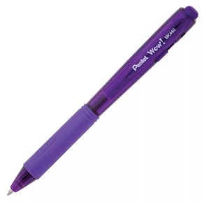 Caneta pentel caneta retrátil com botão lateral, corpo triangular e grip emborrachado para melhor encaixe e conforto da mão. Escrita suave e cores vivas. Excelente custo x benefício ponta esférica metálica de 0.7mm. Ponta esférica metálica: 1.0mm tinta na cor: roxo inmetro :001230/2013 atenção: imagem meramente ilustrativa. Pode ocorrer mudanças no tom da cor para o produto real ou mudanças na embalagem sem aviso prévio por parte do fornecedor/fabricante Ean: 072512235829